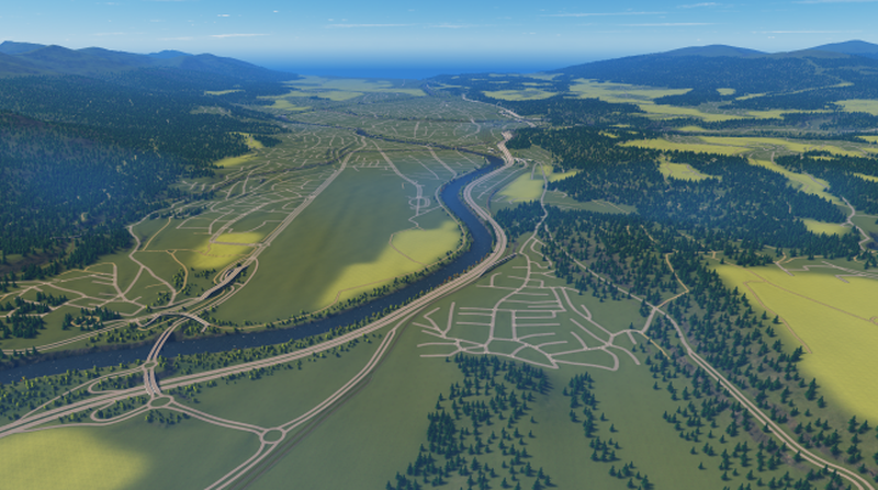 As this is a river map use some other waste water building than the common pump, otherwise the river will flow the eastern area after 80-100K people. I use this mod: “Sewage Treatment Pump” from “Carlzilla”