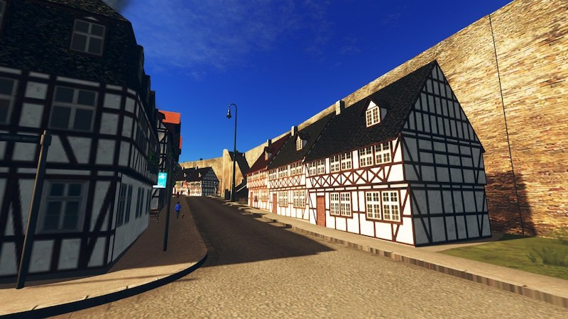Das ist nicht nur ein Gebäude, es ist ein ganzer Stapel an Gewerbegebäuden hoher Dichte. Alle sind möglichst realitätsgetreu dem Fachwerkstil entsprechend gestaltet. Zur Zeit sind es 10 Assets.
