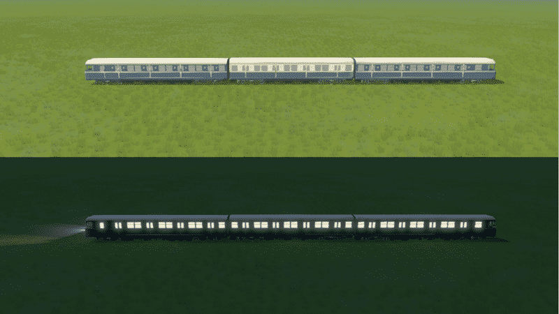 With illumation map and headlights for after dark. Driver cabin stays dark with transparent windows. The line indication panel behind the front window changes color according to the train’s line.