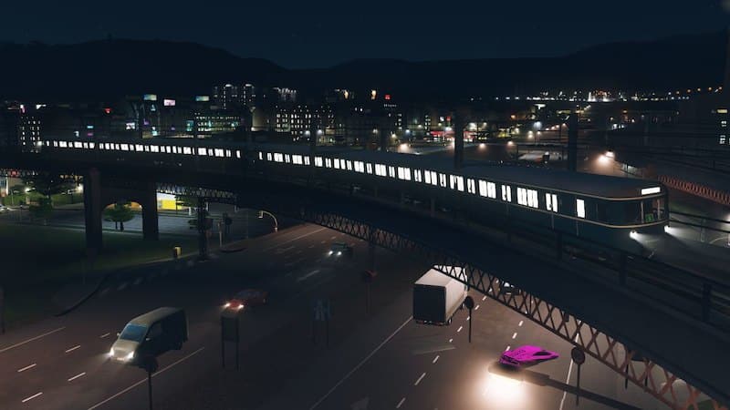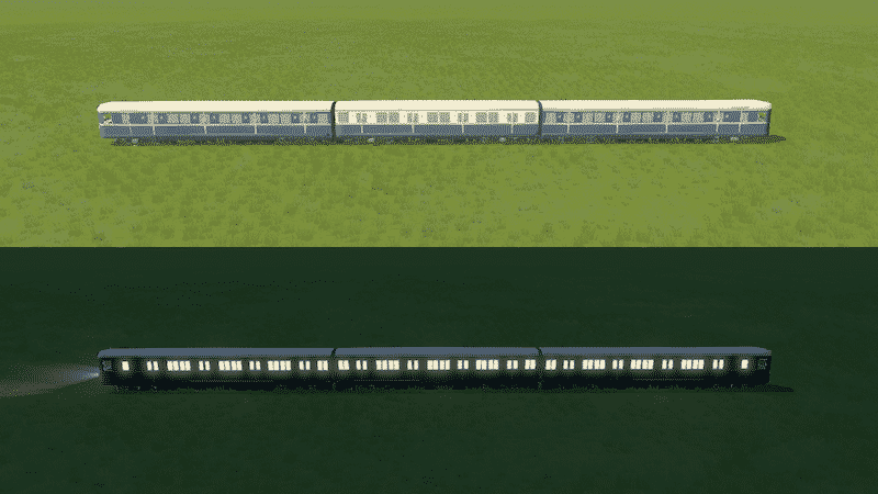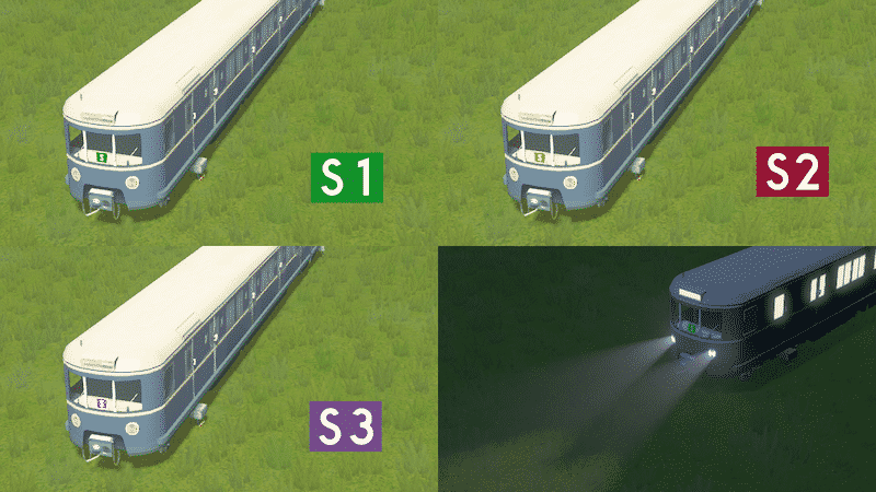 With illumation map and headlights for after dark. Driver cabin stays dark with transparent windows. The line indication panel behind the front window changes color according to the train’s line.