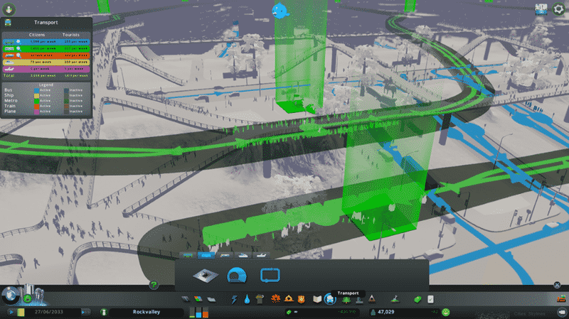 Metro: – I added the second metro station space because whereas there are always going to be metro links to the main urban/commercial centres I usually have a coastal metro line containing other stations as well as these harbours. A coastal metro line always works well for me.