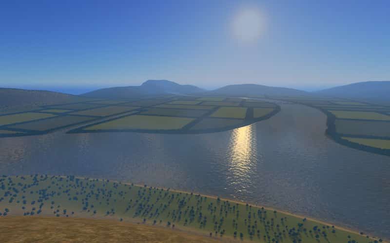 The fields/farmlands areas of the map are built up with different resources, including fertile land. Giving large amounts of choice for specialised industry.