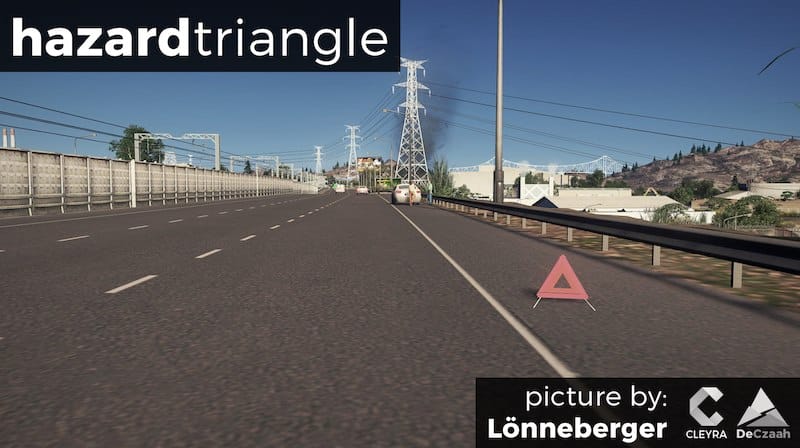 This is a typical hazard triangle (Warndreieck in german). This prop was specially made because of a request by a friend: you will find it in Loenneberger’s Lönnebay videos on his beautiful Lönnebay map. The red reflector parts are slightly illuminated, to give it a better look. Also, some parts are speculated.