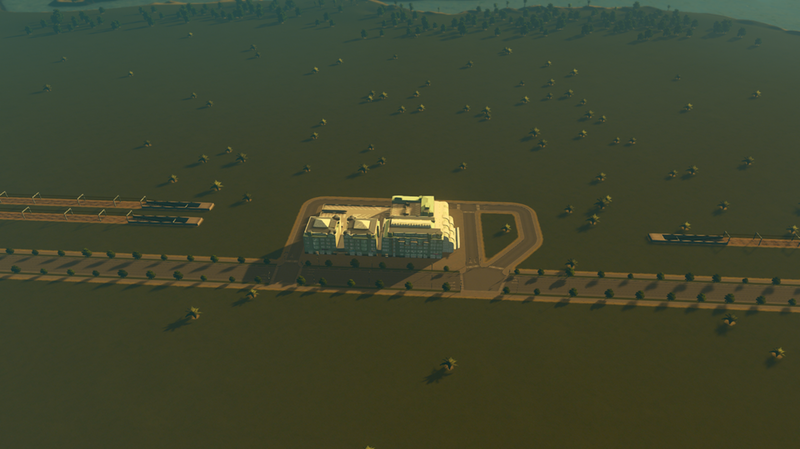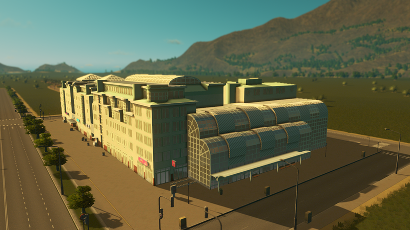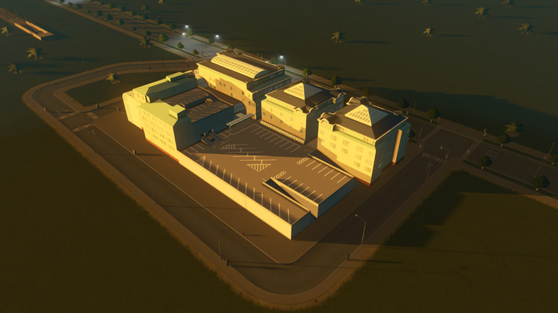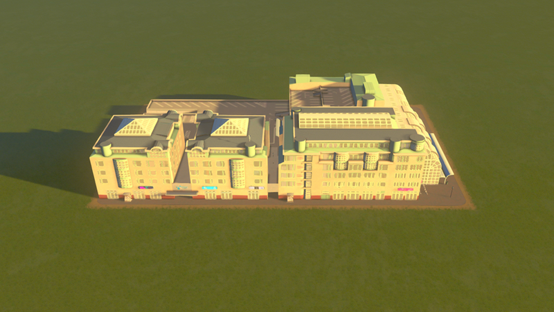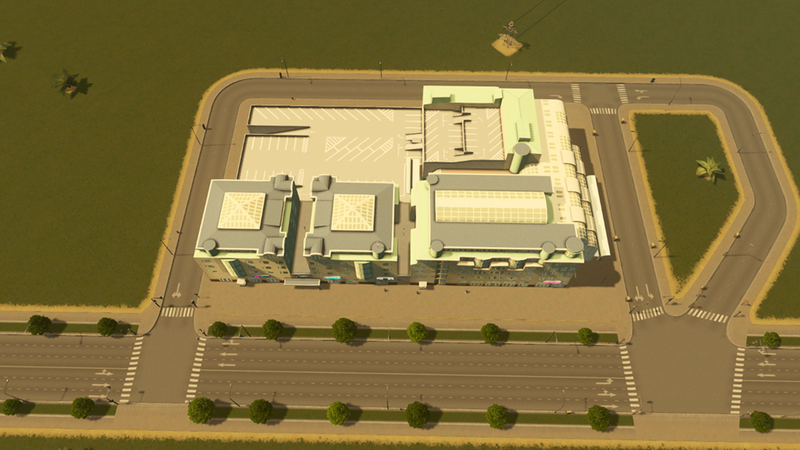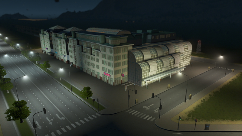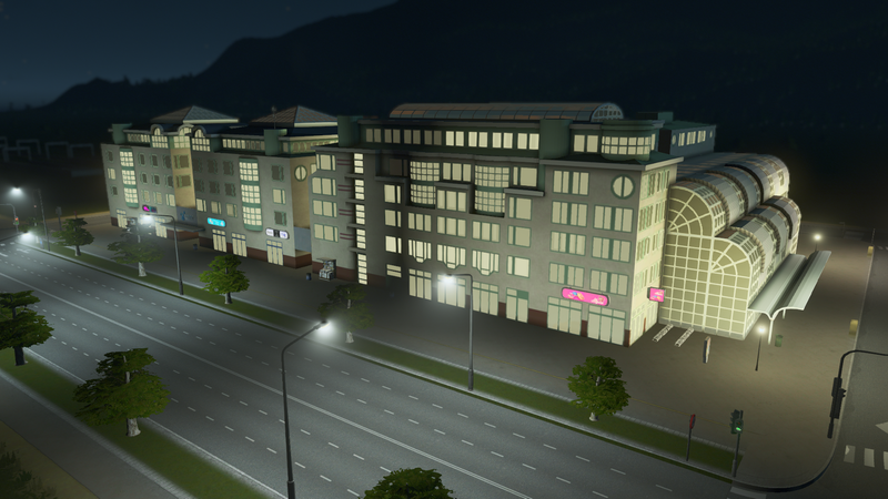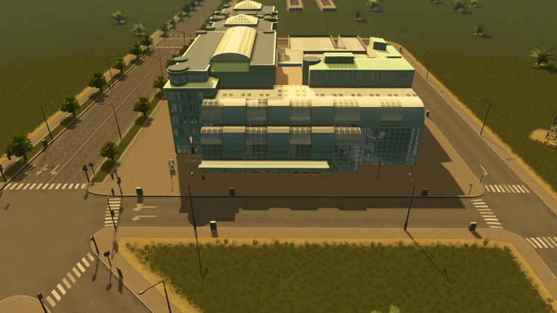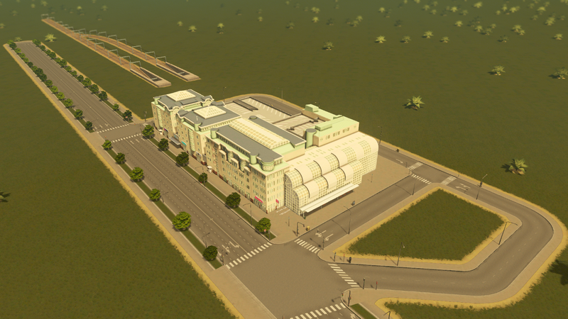 This asset has been modeled after the central station of Helsingborg, ‘Knutpunkten’. However, the model is somewhat simplified compared to the real building in order to fit the model within the default maximum grid sizes allowed by the game (15×9 cells or 120x72m). This means that the ferry terminal and the bus terminals from the real building have not been modeled.