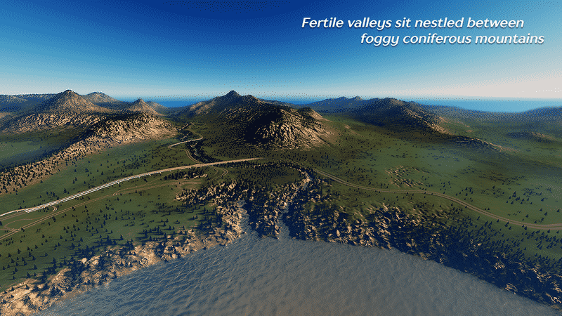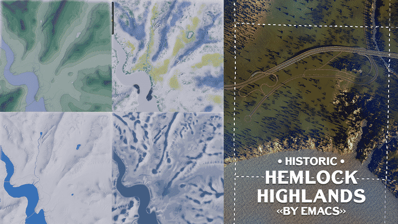 Overlooking the Ashawashka River, the Hemlock Highlands comprise of forested mountains and fertile valleys. Loosely based on the Hudson Highlands in New York, the Hemlock Highlands map provides beautiful natural views of Northeastern terrain. Much of this map is covered by steep mountains, making it better suited to rural towns and small cities than bustling urban megalopolises. Hemlock Highlands is accessible via one train track, one plane route, and one ship route, as well as a six lane parkway by the river and a two lane highway through Stonybrook valley.