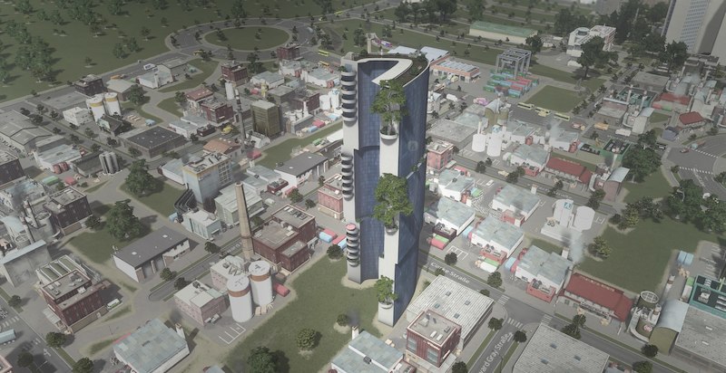 After a break I am back. A big 4×4 H3 Bumerang shaped Green Tower with a lot Glass. Because Artists create Art. Have fun! (Buro version will come soon if requested)