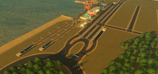 Joins any five roads. Works best with 5 6-lane roads. Very efficient, no lights, no stops.