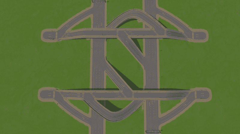 Use this for getting traffic on or off your highway system or as a four way highway intersection. Can handle quite large amounts of traffic easily without jams.