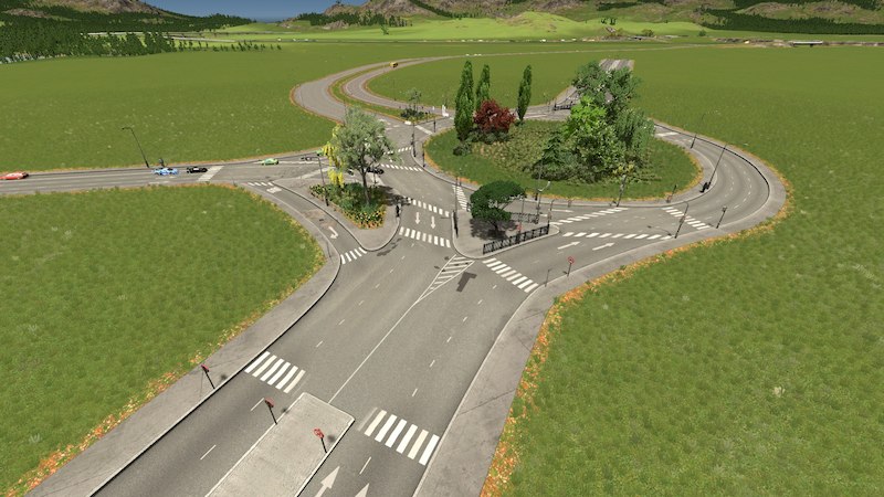 This intersection use some road types of this mod.