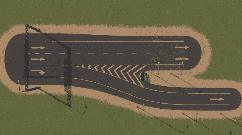 A wider version of 3 to 2+1 Off Ramp. A curve is a little bit smoother.