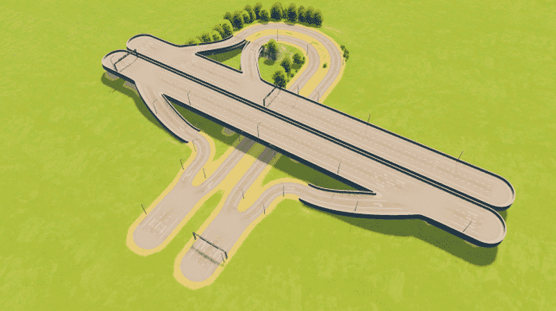 Highway – 3 lanes. I Would appreciate it very much if you like this intersection if you could rate it. I also have a few 90 deg corners similar to this one: