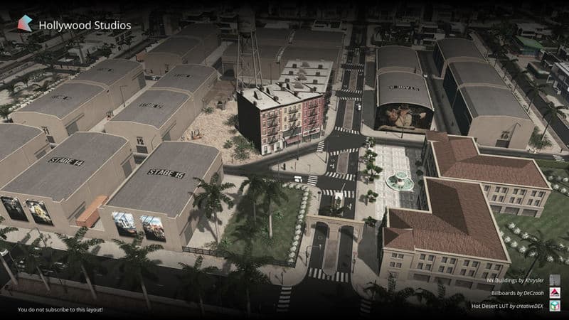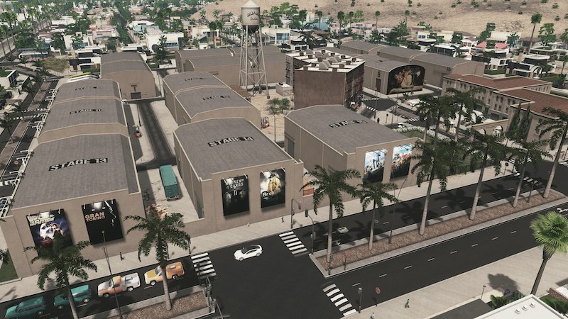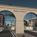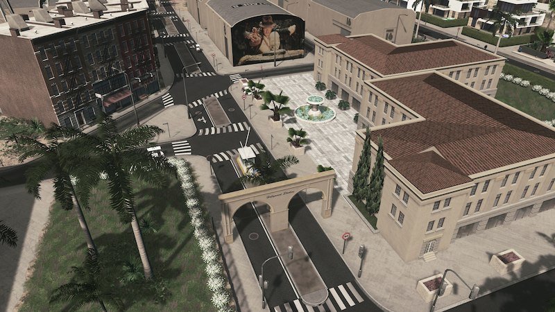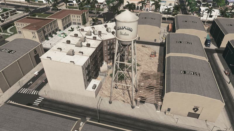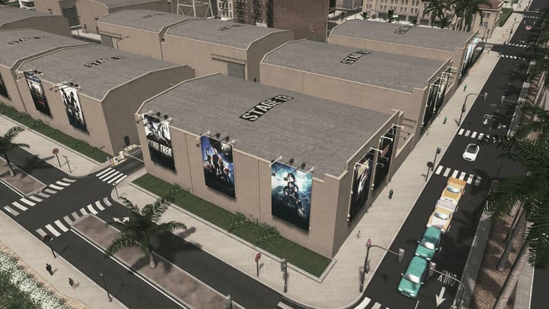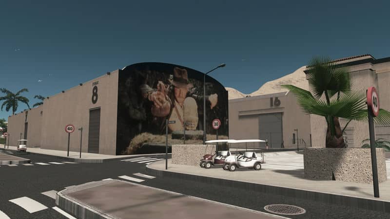 This pack contains several unique buildings to build your own film studio. I have been inspired by different film studios in LA like Paramount, Warner Brothers as well as Fox studios and mixed their styles. For authenticity purposes the Indiana Jones poster wall was added and credit belongs to Paramount Pictures for its design.