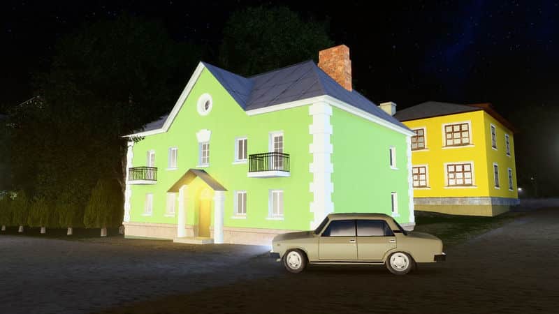 The walls are painted in one of four colors – lilac, light blue, light green, orange.