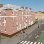 A four-storey house with 32 apartments (in the game 11 families).