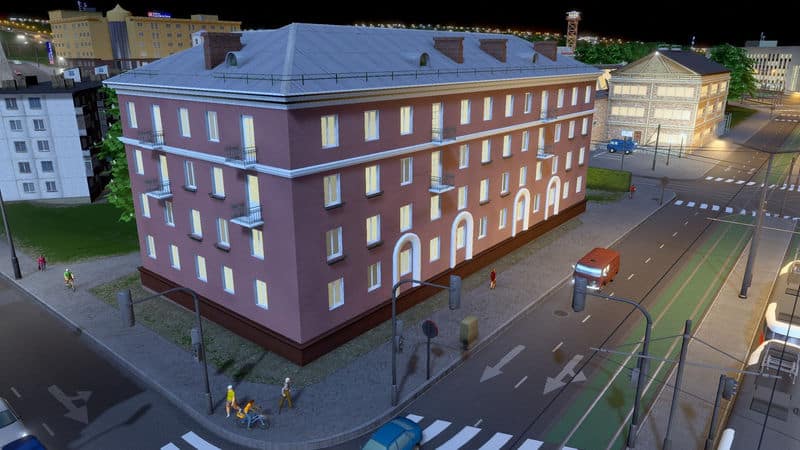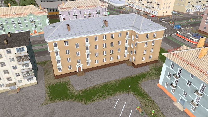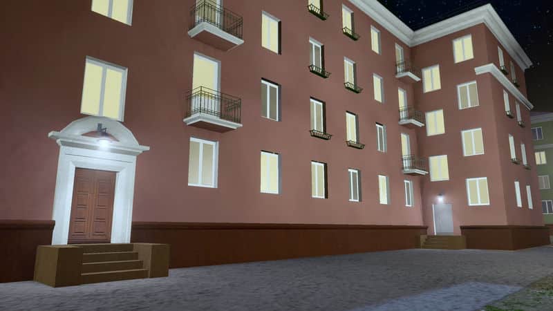 A four-storey house with 32 apartments (in the game 11 families).