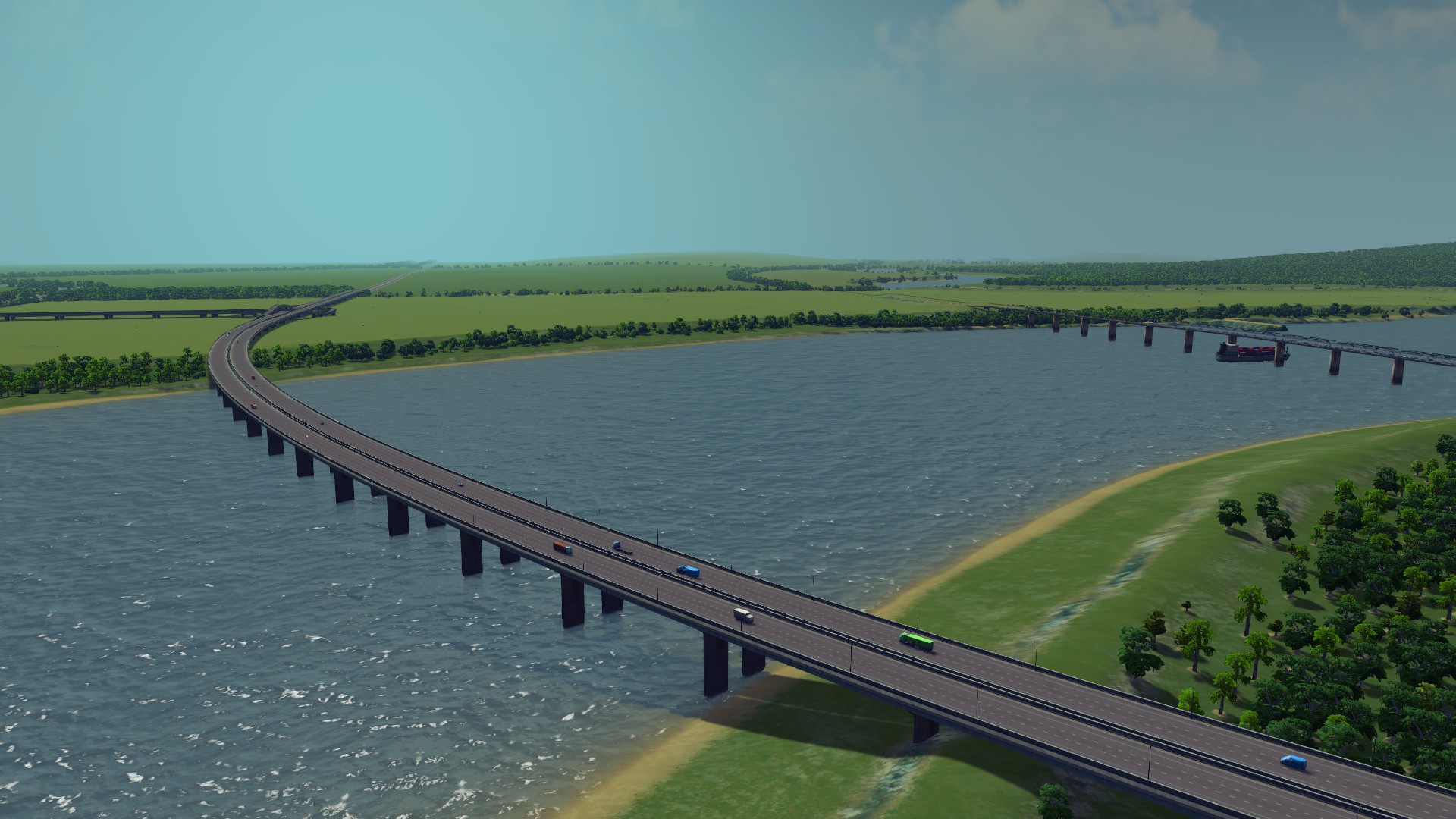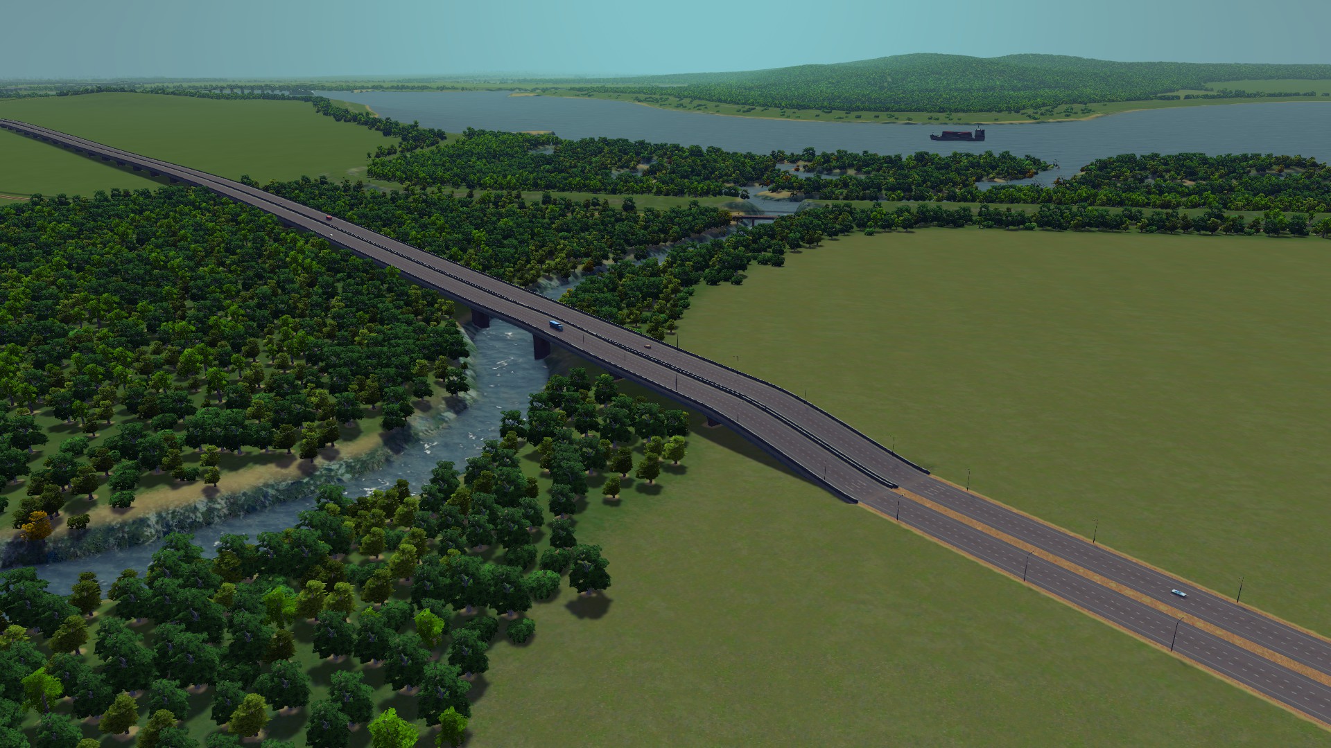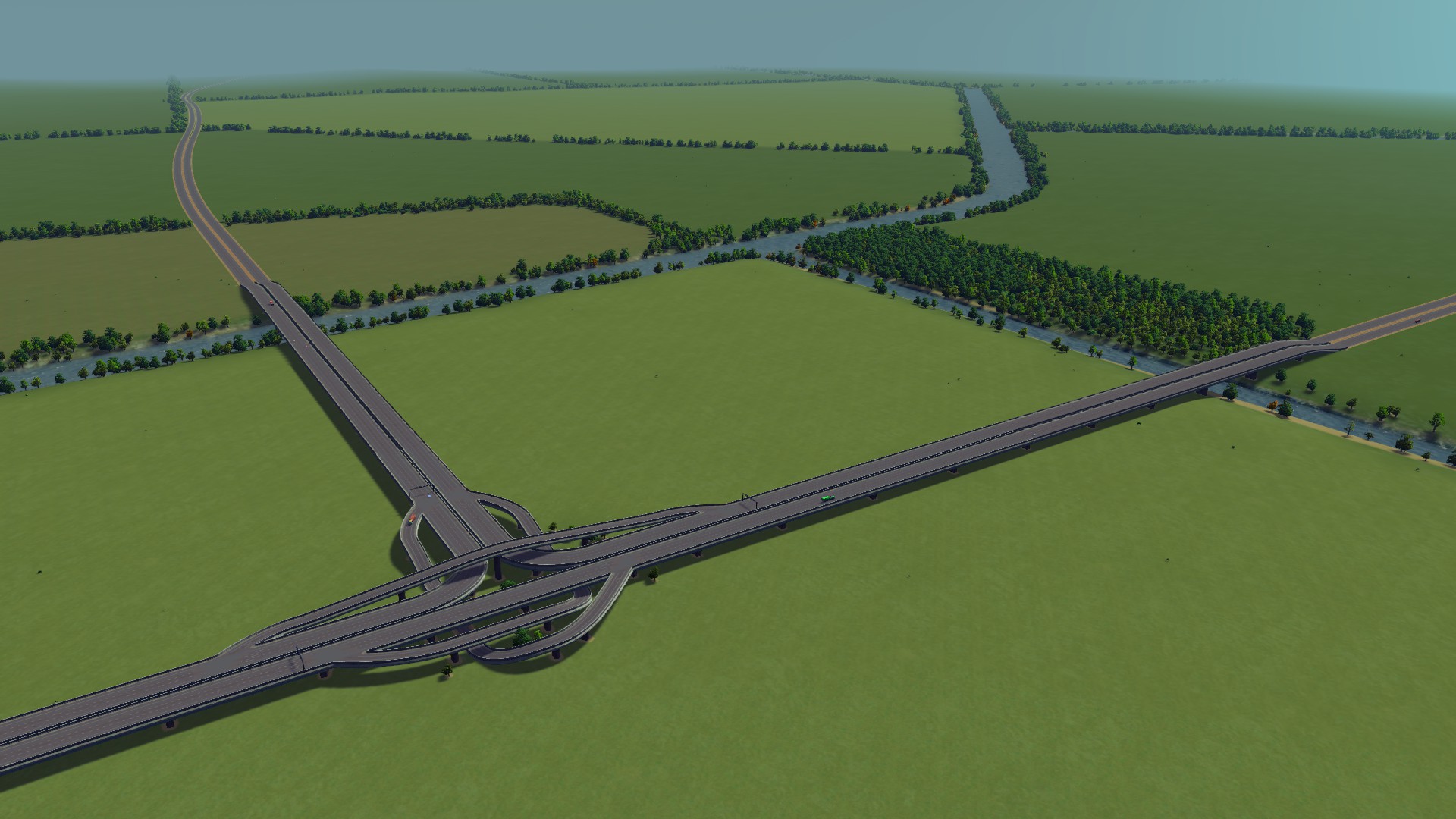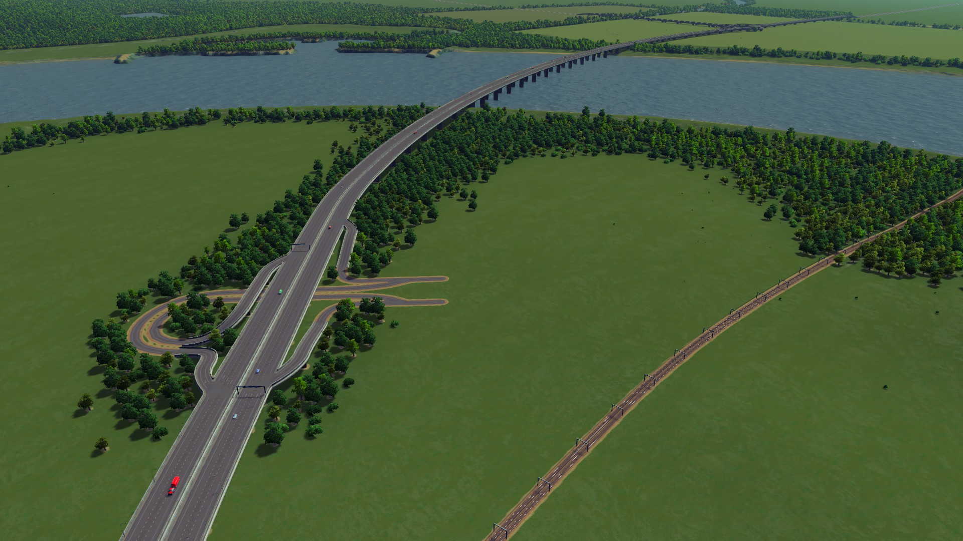 The region has three incoming rail lines, three highway routes and ship routes along the entire river. There are three areas for ore, all within the forests, and three for oil. There is plenty of farmland at the outskirts of the map.