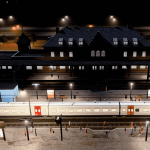 The Scandia/ABB IC3 (class MF) diesel multiple unit train, as operated by the Danish State Railways (DSB) in the red/white color scheme.