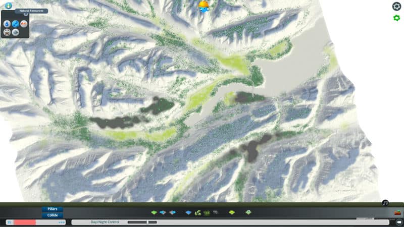 There is plenty of natural resources. Almost all flat land is suitable for farming. There is two big paches of oil in the map, one just across the river in the starting tile and one hidden away from the main valley. The mountains contains lots of ore.