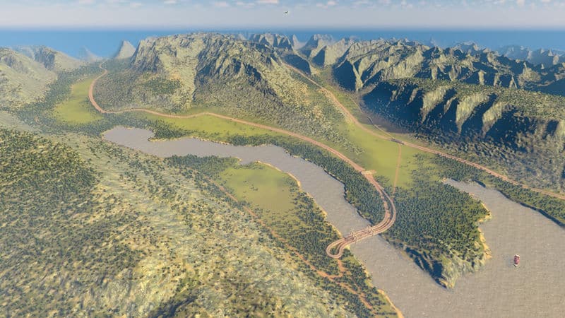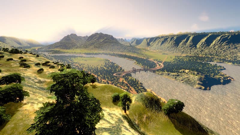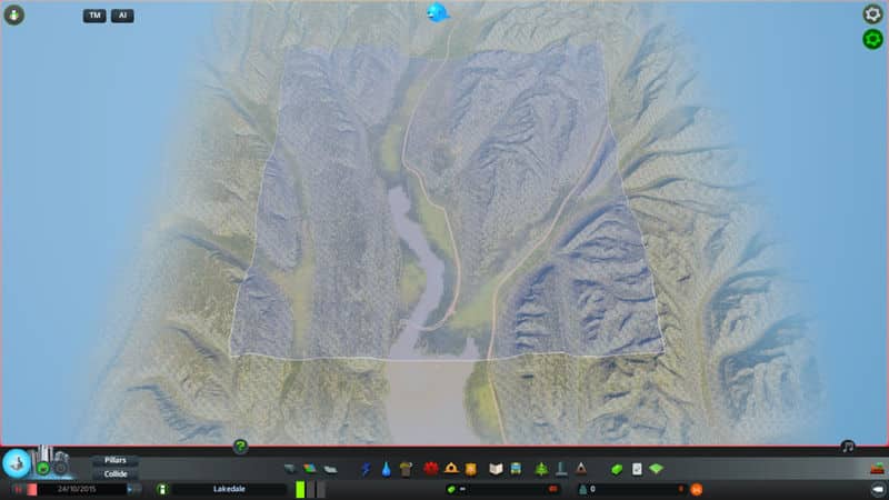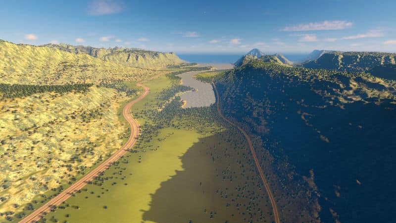 The starting tile has been nicely laid out to be almost flat. There is both a highway and train connection, lots of wind power and a fast and strong river so you will not need to worry about sewage. Additionally there is two strong water drains placed in the bay that should take care of any amount of sewage later in the game.