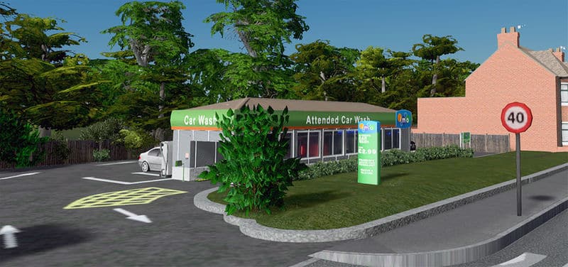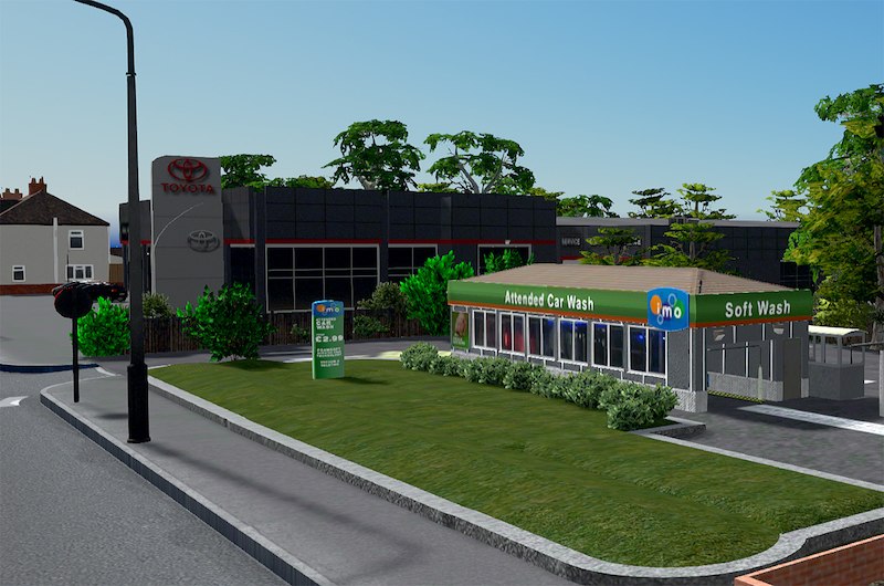 Loosely based on IMO Car Wash in Weston-super-Mare – see pictures.