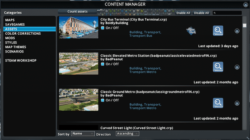 – ‘Enable All’ and ‘Disable All’ buttons are now applied only to currently filtered assets/mods