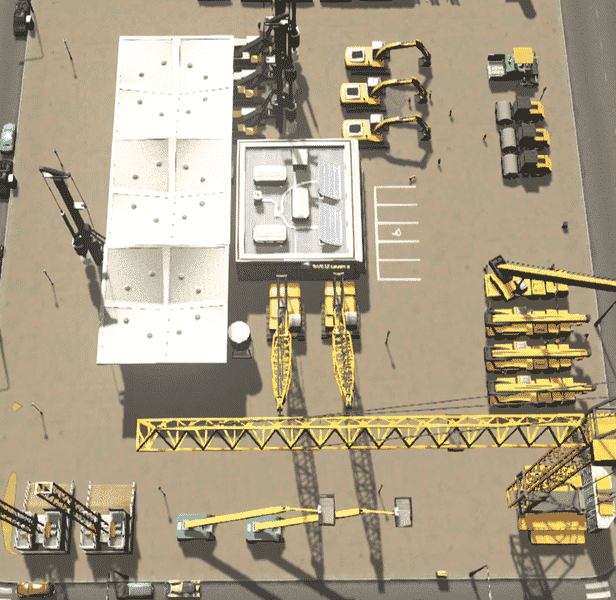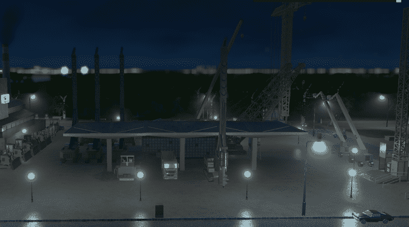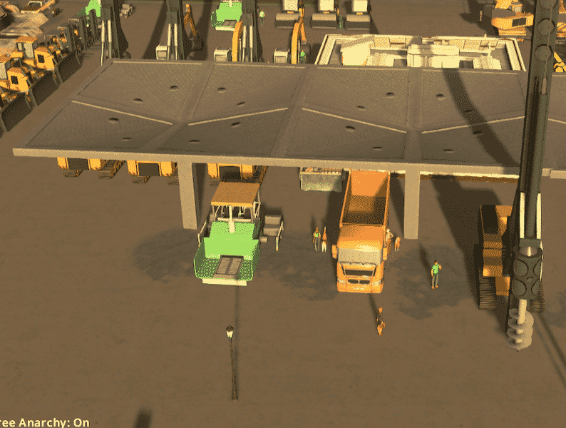 Set as a Plaza, instead of a park, so the asset has a more realistic look and markers are set so it looks like mechanics are out back working on the trucks and shoppers are roaming around shopping for equipment.