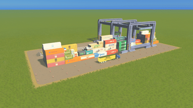 The railroad & the road can be connected to your network. the plot can be placed besides each other and connected up to form a long container terminal.