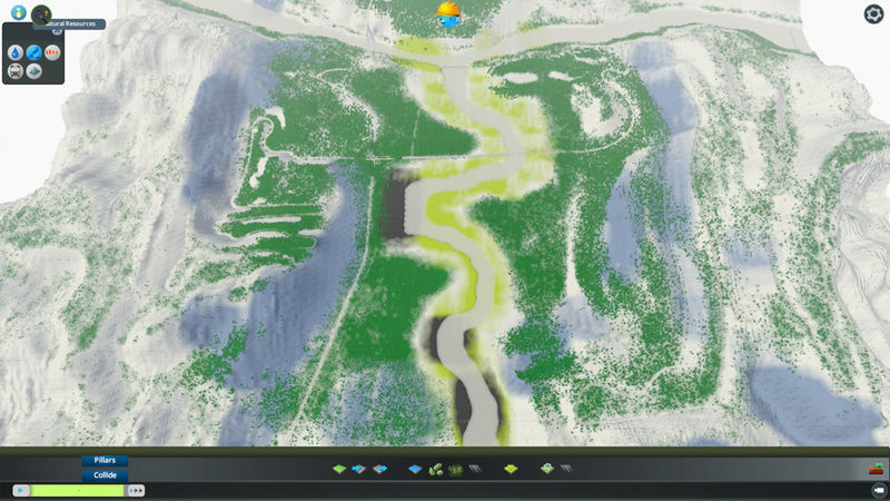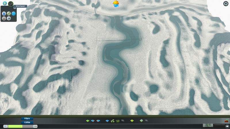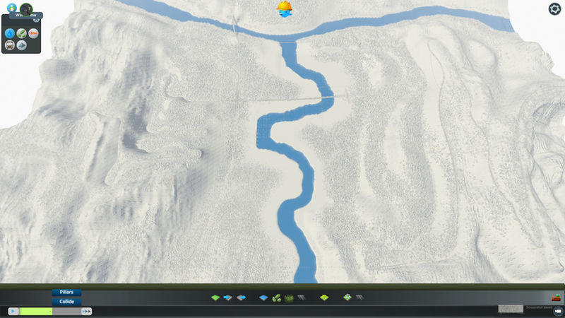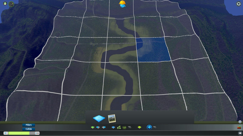 Plane paths follow the river to avoid accidental better bulldozing. Water spawn and whirlpool to suck up poo are located near the starting tile.