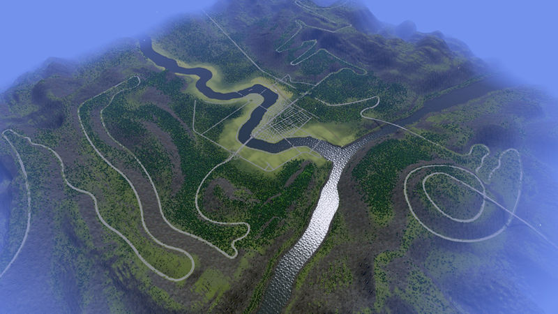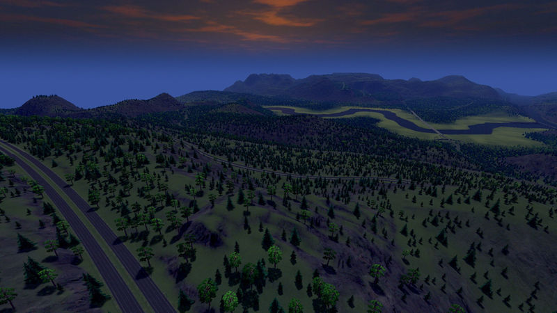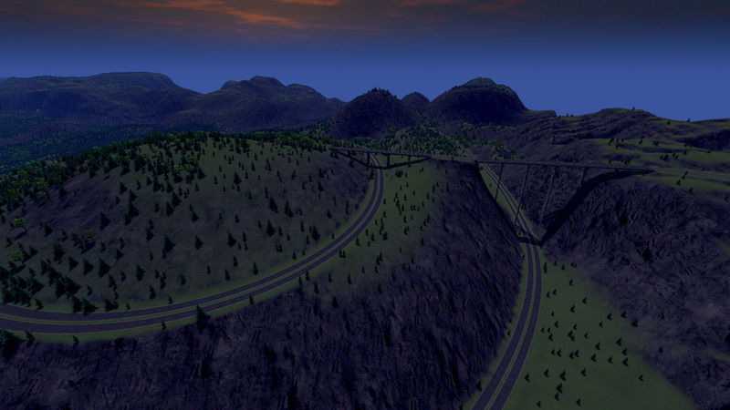 Do you like long winding drives through the mountains? Into the European Valley was hand crafted to feature 3 highways that descend from 1000 meters above sea level to 12 meters. Each of the highways was built with configurable slope limits and fine road heights to create realistic slopes and are perfectly parallel the whole way down, meeting up in a large cloverstack.