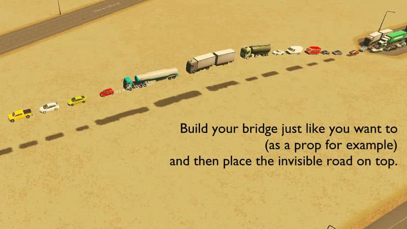 - Place the invisible Road next to your intersection, then move it into the right spot. If you try to place it directly to the right spot you will get very frustrated because it will try to connect to other roads
