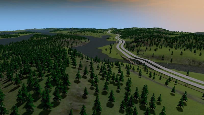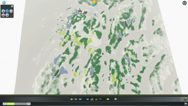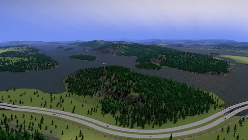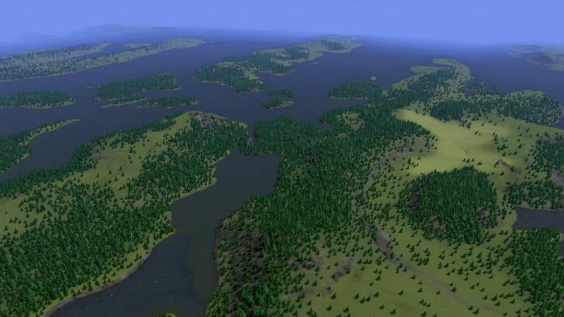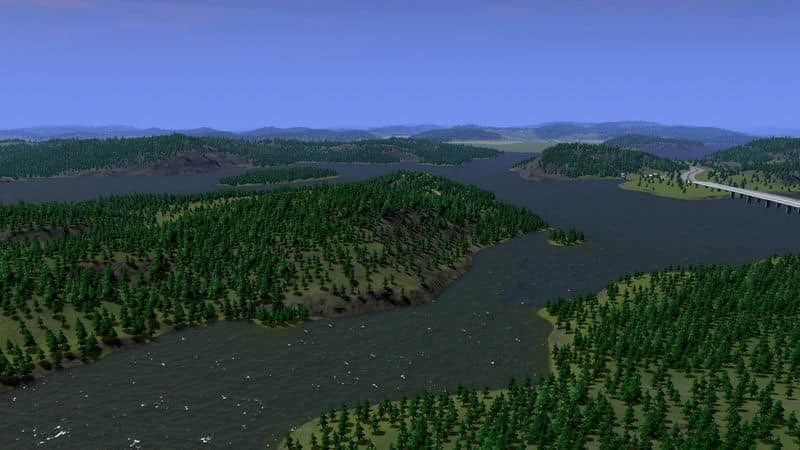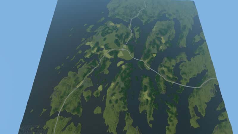 Unusual feature: This map was requested to be the opposite of flat (I also happen to like that!). The main island at the start area has two large level areas where you can place large areas that need totally flat terrain (like airports, large buildings, etc).