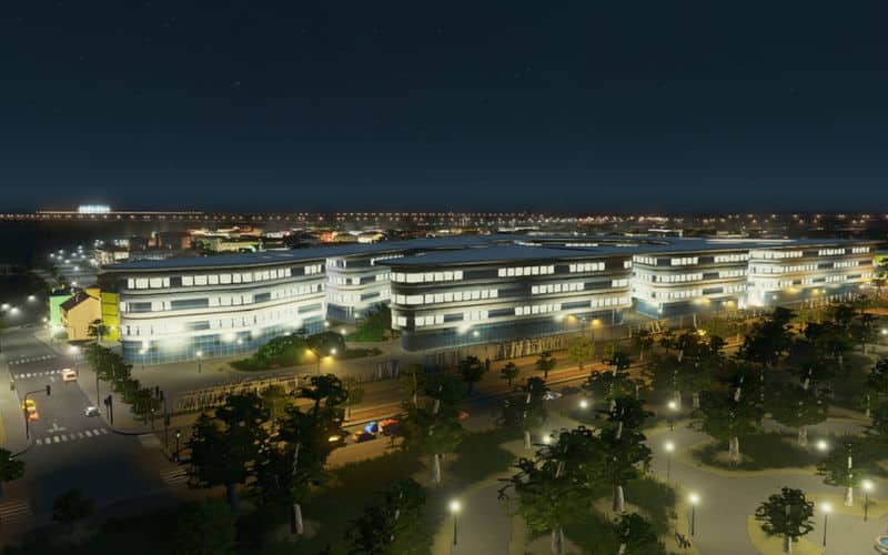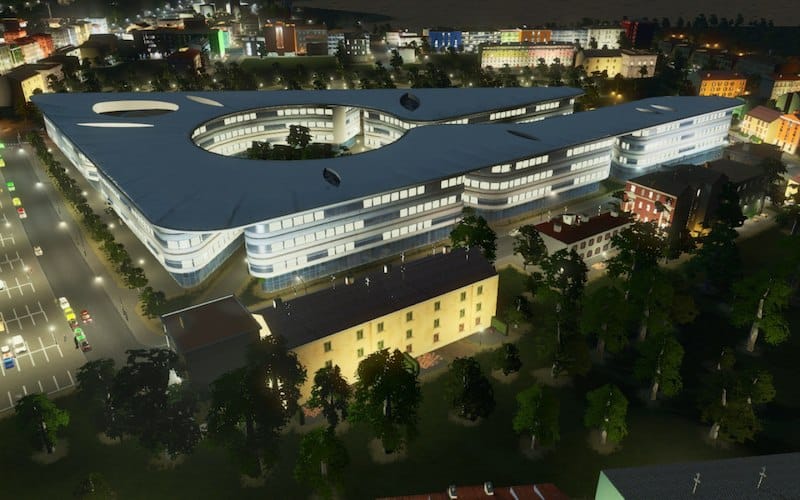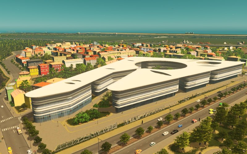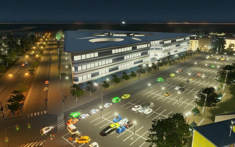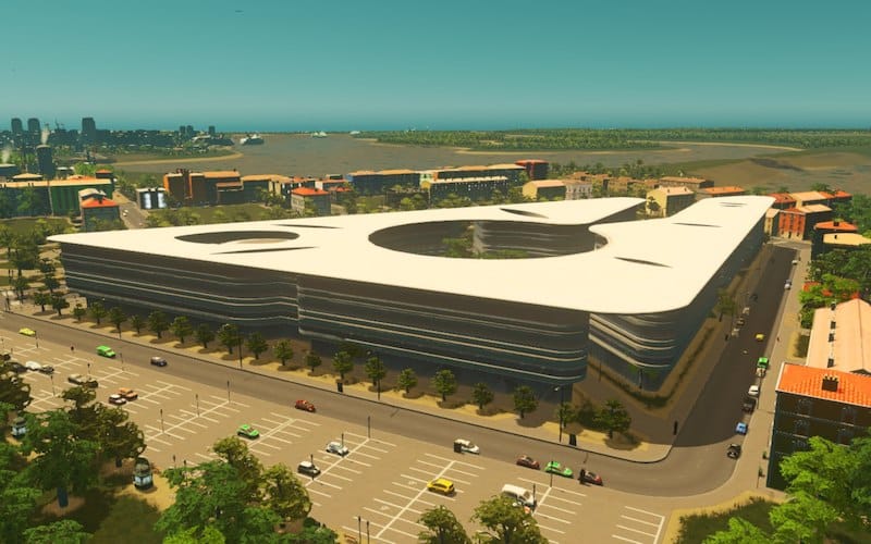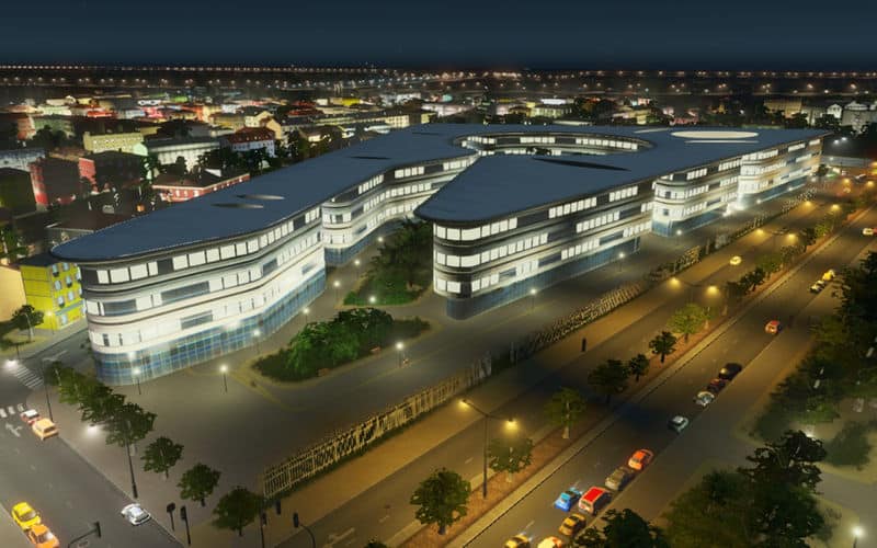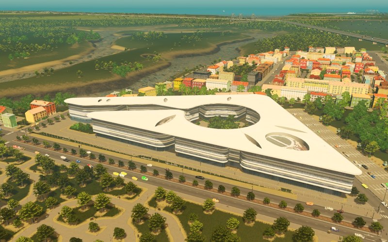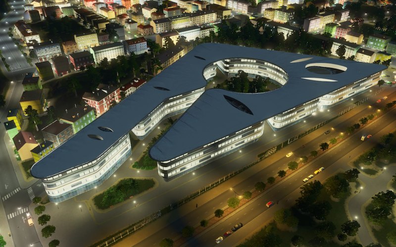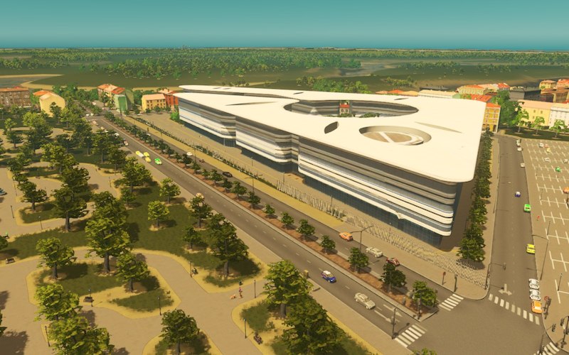 – Gli screenshot pubblicati sono un esempio di come inserire il modello all’interno di una città esistente. Il modello scaricato comprende solamente l’edificio principale e gli oggetti di scena ad esso legati. Parcheggi, edifici laterali e strade sono create con i normali comandi di gioco