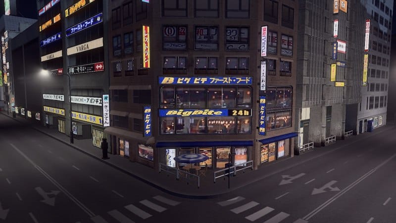 A commercial building model from the Cities in Motion: Tokyo DLC. It features an updated illumination, and specular map and a reworked diffuse map. The model is edited to fit a 2 tile wide lot for a tightly packed, wall-to-wall commercial area.