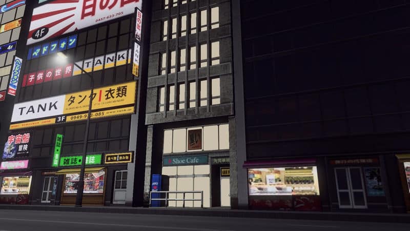 A commercial building model from the Cities in Motion: Tokyo DLC. It features an updated illumination, and specular map and a reworked diffuse map. The model is edited to fit a 1 tile wide lot for a tightly packed, wall-to-wall commercial area.