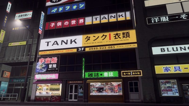 A commercial building model from the Cities in Motion: Tokyo DLC. It features an updated illumination, and specular map and a reworked diffuse map. The model is edited to fit a 2 tile wide lot for a tightly packed, wall-to-wall commercial area.