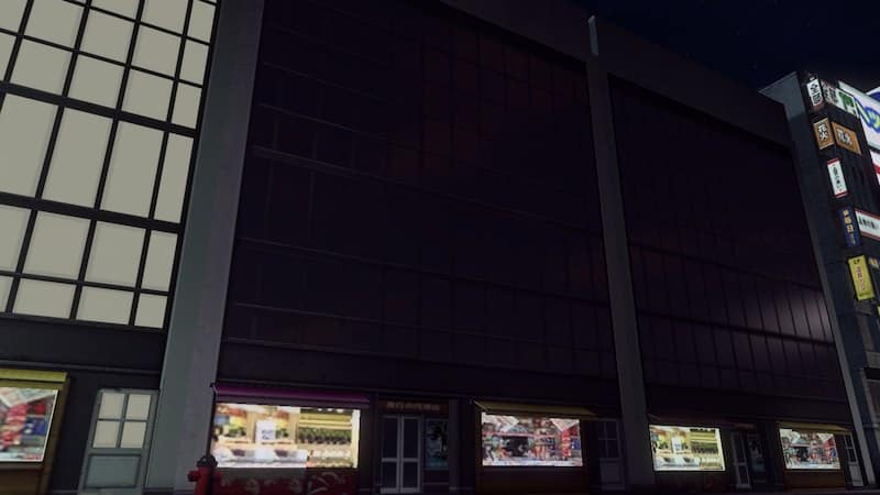 A commercial building model from the Cities in Motion: Tokyo DLC. It features an updated illumination, and specular map and a reworked diffuse map. The model is edited to fit a 2 tile wide lot for a tightly packed, wall-to-wall commercial area.