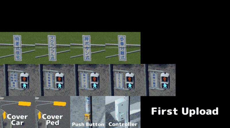 • 表示板:自動車用(縦)「押ボタン式」「歩車分離式」「スクランブル式」「時差式信号」
