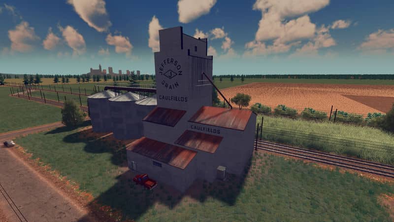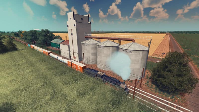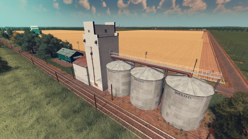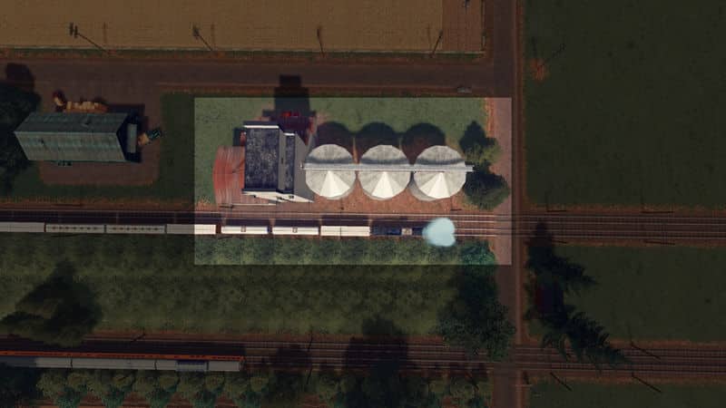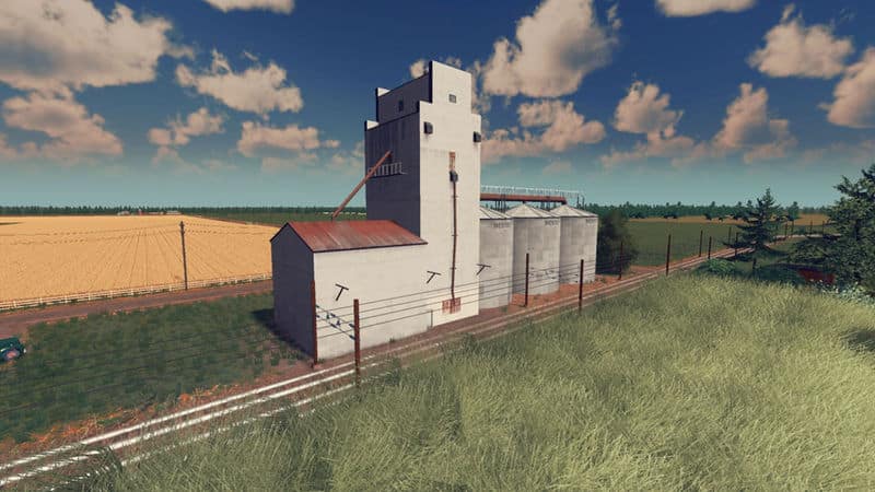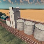 A large concrete grain elevator with 3 supplemental silo’s. a common sight around the rural parts of alberta and saskachewan in canada, this particular one is based upon one in the town of holland. used to store and transfer grain from one train to another, this building will get the job done.