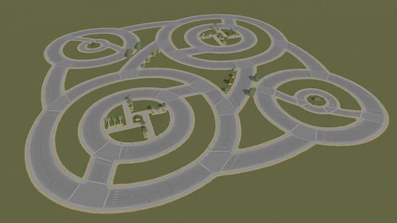 A dual-quad roundabout starter for a large residential/commercial zone.