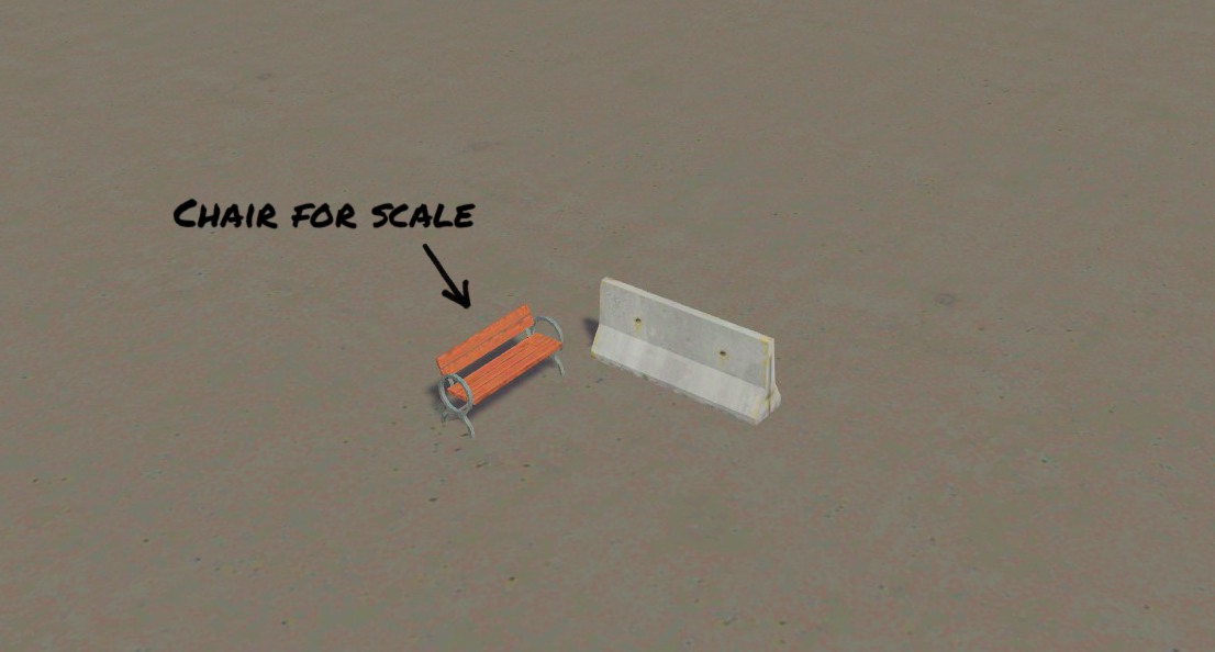 A standard concrete jersey barrier prop, for use in creating new assets.