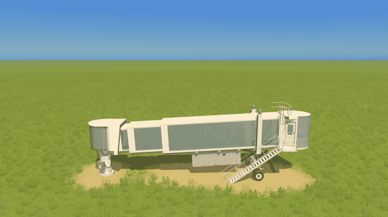 A prefabricated Jet Bridge as a building. This model is the correct height for the A320 Family (A320, A321, etc.) And possibly the B757.