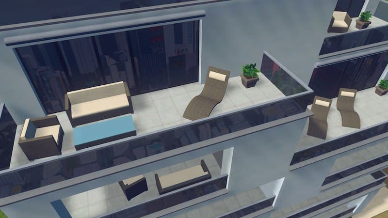 This pack contains four modern outdoor furniture props. I think there is not much modern furniture to find yet. So I was encouraged to create some for my new apartment building.