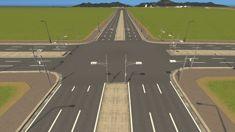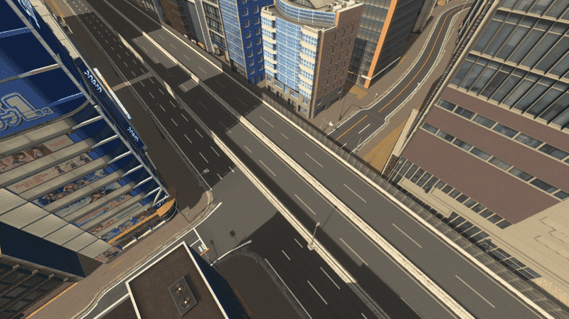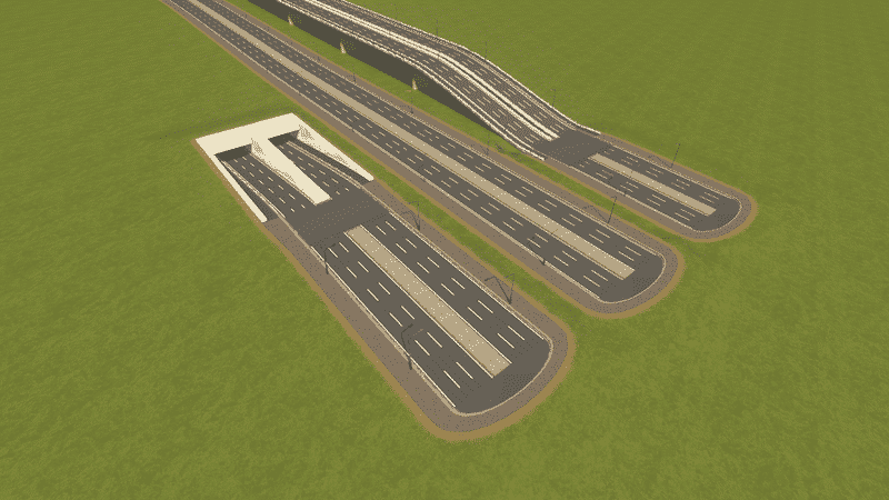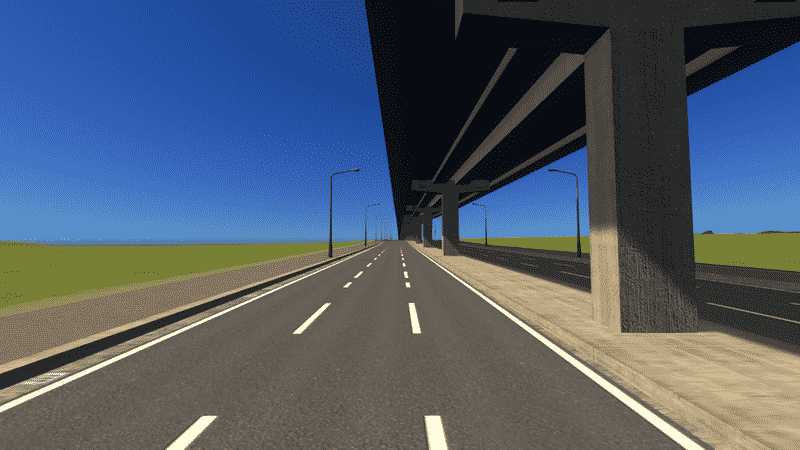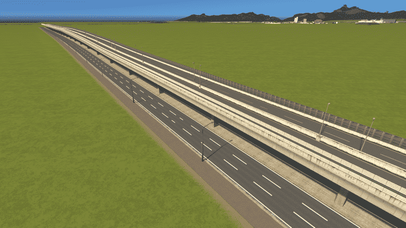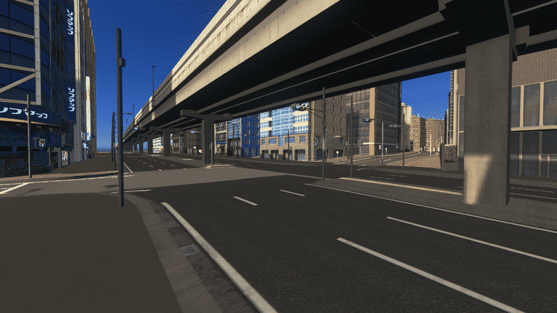 高速道路が付随しているSSは作例です。本アセットは6車線道路のみです。