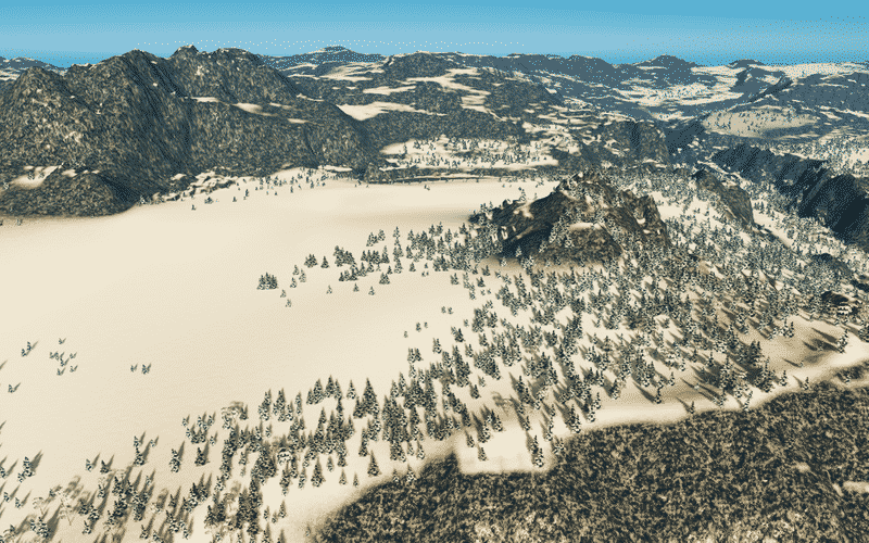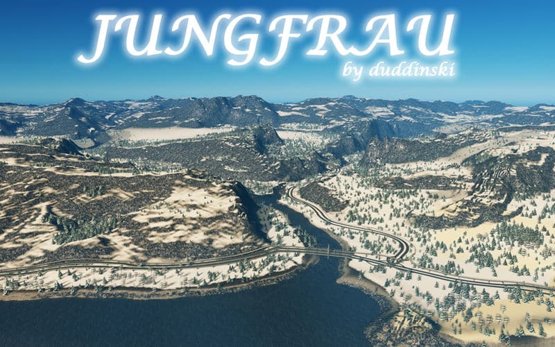 Build on the edge of the snowy Swiss mountain range of Eiger-Moench-Jungfrau! The terrain of high and low plateaus, mountains and canyons offer an amazing new perspective and challange to the game – unseen before on the default winter maps. The real world heighmap had been made perfectly playable. Start your village in Wengen/Kleine Scheidegg and grow to a city in Grindelwald and Lauterbrunnen. Reach the valley of Interlaken to get sea access and space for industries. Enjoy! /// duddinski