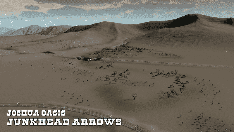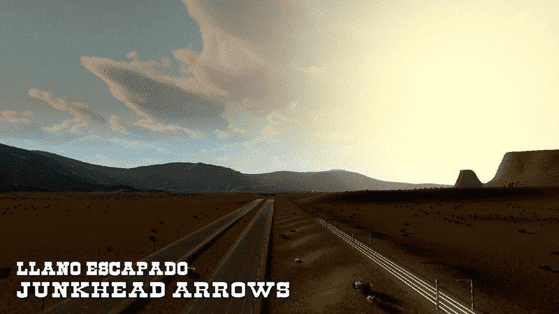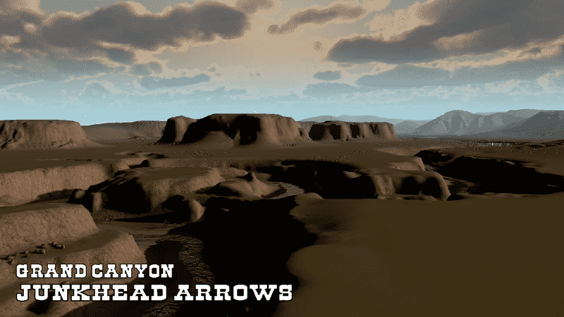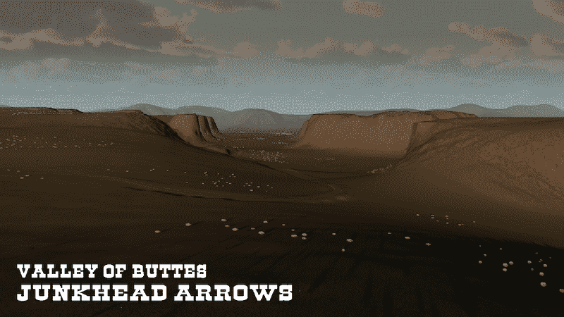 Junkhead Arrows takes place in the one and only Southwest of the United States. It features landmarks similar to those you can find there like the Grand Canyon, Monument Valley or salt flats. There are mountain ranges and hollow deserts as well.