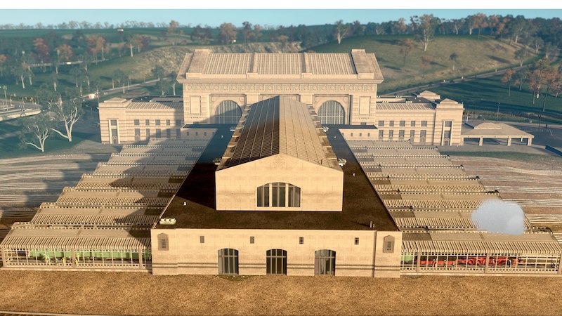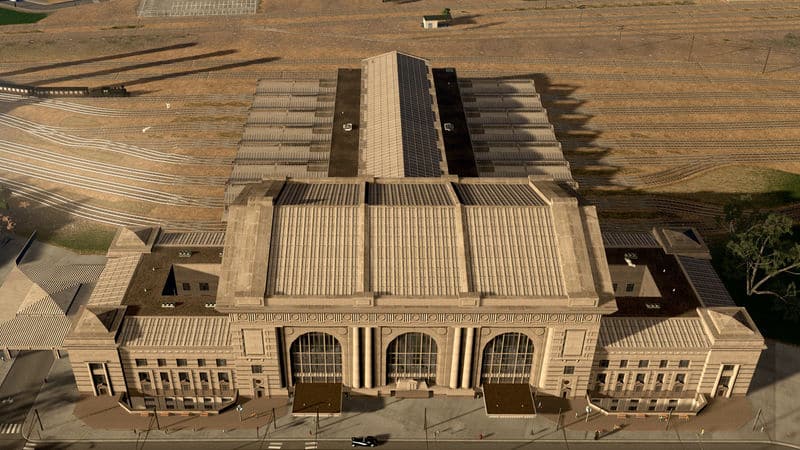 For best results, level surface before placing. Derpy entrances can be avoided if the road is flattened before placement. No mods required, however Caternary replacer mod is suggested to get rid of the railroad powerlines. Anarchy can be used to take advantage of the carriage pavilion entrance on the left side of the building by placing a stretch of road through the carriage pavillion (refer to screenshots). ?