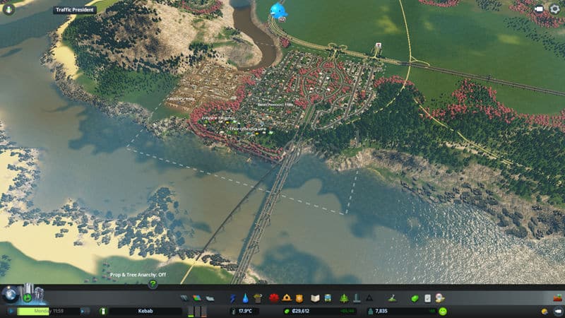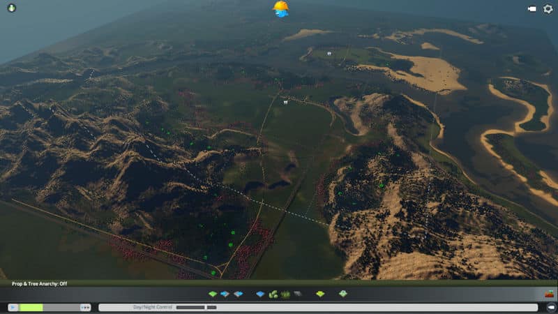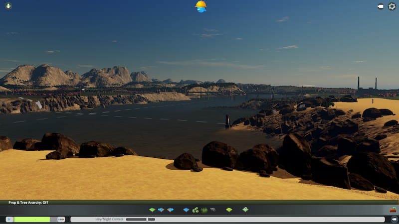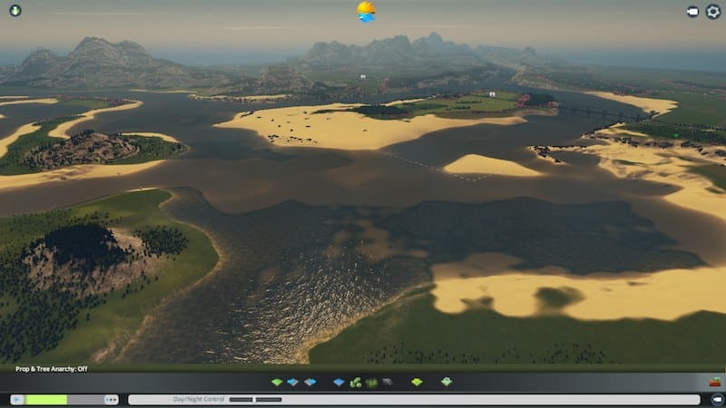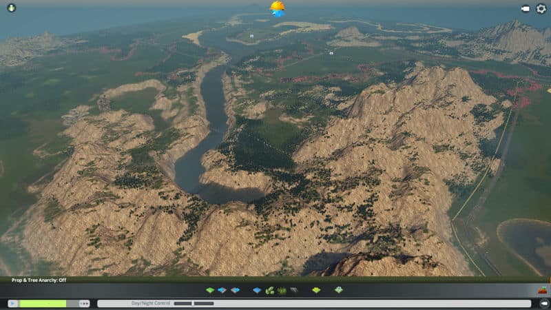 Everyone should find something cool here – you can build megacities on flat land, there are hilld and mountains, lagunas and beaches. Dam lovers are able to build some on the wild long river. You can build docks and ports around laguna or rivers – there are two ship routes, air space is avaiable and you can build railroads around.