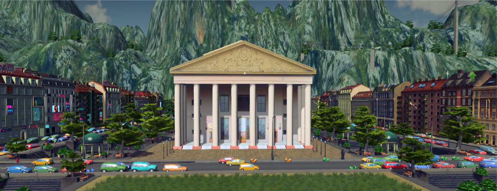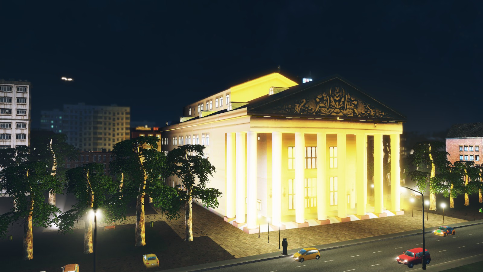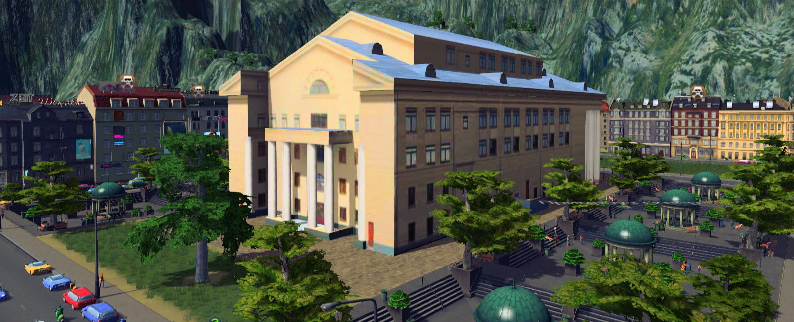 Единственный полностью реализованный градостроительный ансамбль центра Кемерова был воплощен на театральной площади. Проект драматического театра на 800 мест в Кемерово (пр. Советский, 53) разрабатывался в 1953-57 гг. проектным институтом «Гипротеатр» (г. Москва). Автор проекта – архитектор А. П. Максимов.