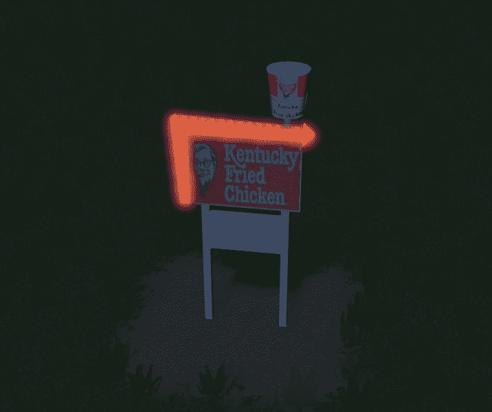 KFC sign with light illuminating arrow, for use with my 1963 KFC diner.