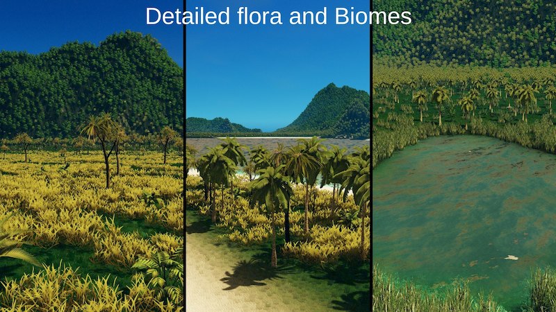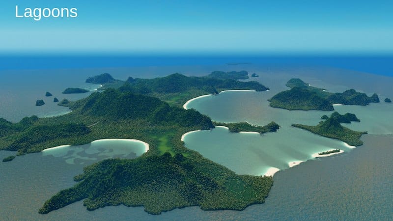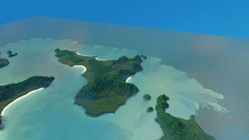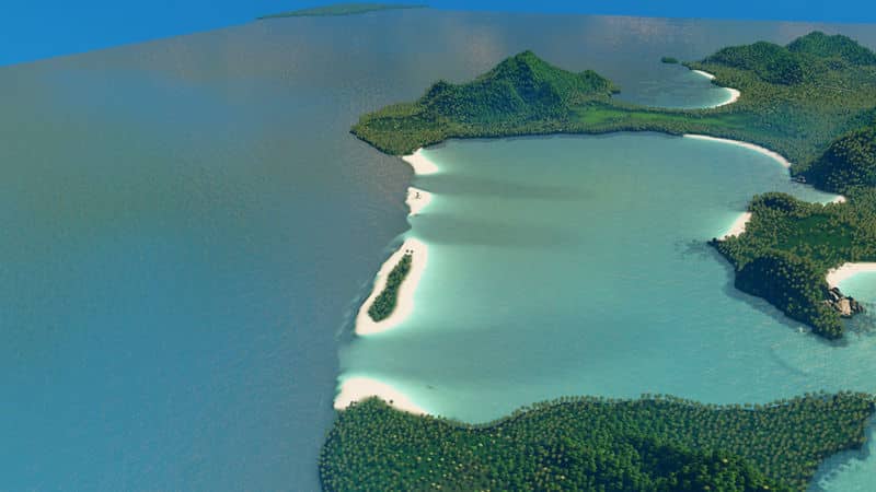 The island was imported from heightmap and was edited to be playable on. The waterfall added to the map to give more detail and beauty.Tree density is high as In the real life and some beaches actually exist. The Reefs, Beaches, lagoons and few islands were all made by me.